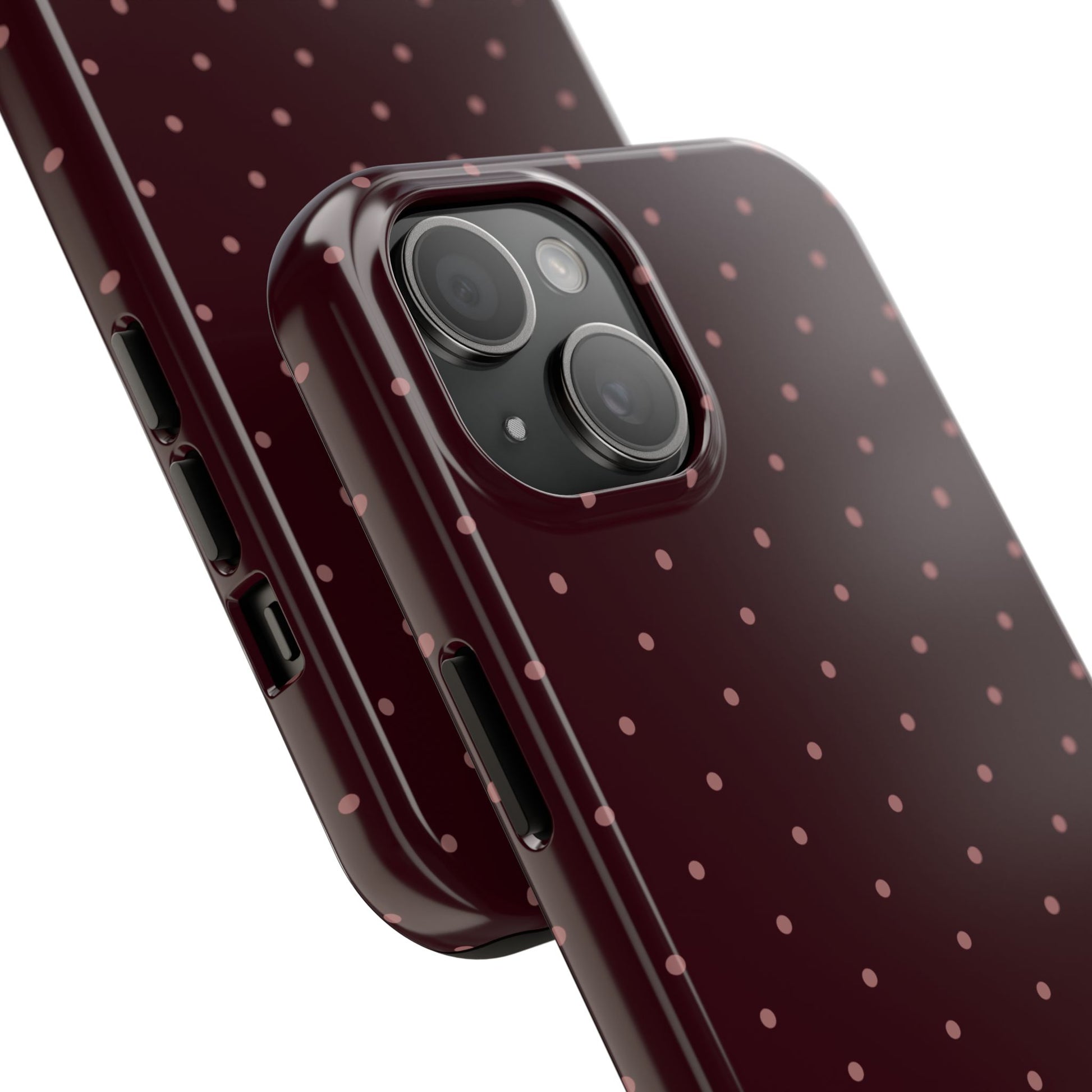This case is giving chic meets sweet 🍒! With a glossy maroon base and tiny blush polka dots, it’s the perfect blend of classy and playful. Whether you're heading to class or a late-night café run, this case adds that subtle pop to your everyday vibe 💫✨